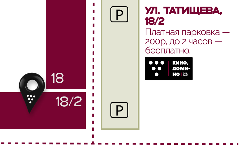 Информация о парковке: общегородская платная парковка — 200 руб., до 2 часов — бесплатно.