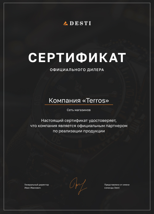 Сертификат дилера Desti