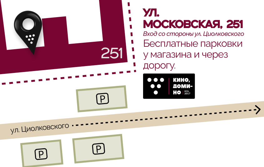 Информация о парковке: Бесплатные парковки у магазина и через дорогу. Вход со стороны ул. Циолковского